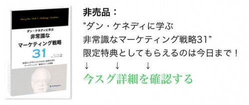 小さな会社が実践で使える、ダイレクト・レスポンス・マーケティングの情報サイト。 ダイレクト・マーケティング界の巨人、ダン・ケネディ氏をはじめ、広告、マーケティングのメッカは米国の第一人者から正式に許諾を得たものをお届けします。