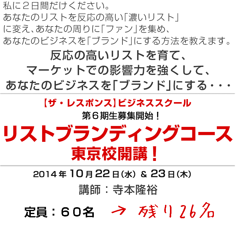 この間たまたま出張先の東京でスタバに入った時には、2つとなりのテーブルにいた男性2人組が、【ザ・レスポンス】の話をして盛り上がっていました。聞いた話によると、起業家の集まりなどでは【ザ・レスポンス】の話題がよく出てくるようです(そして、メルマガ読者は口コミでどんどん増え続けています)。